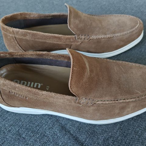 Italienske sko str. 44 i beigefarvet nubuck. Kun brugt en gang.