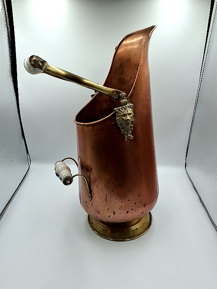 Vasen har en stiliseret form med en smal hals og bredere bund. Den har en grå, struktureret overflade og en guldfarvet kant. Porcelæn ,Afhentes i:,Røde Kors Roskilde (265),Bemærk at mail, chat og beskeder ikke besvares, og varen skal købes på knappen "Gå til varen"