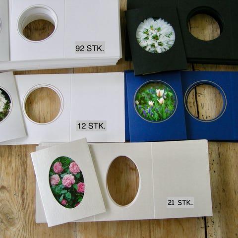 Restlager af af kvalitets passepartoutkort 3-fløjet og 2-fløjet samt passepartoutrammer.