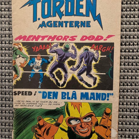 Torden Agenterne tegneserie med illustrationer og tekst på dansk. Indeholder historier med figurer som Dynamo og Supermænd. Farverig forside og indhold med klassisk tegneseriestil.