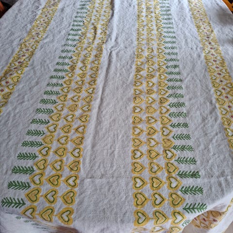 Dug, Påskedug, Hvid ny påskedug 85x85 med glemt mønster og fine kyllinger mv. 100 procent polyester