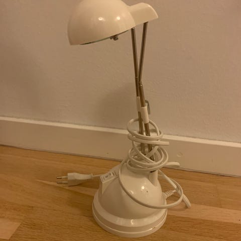 Flot hvid skrivebordslampe fra ikke-ryger hjem. Stram i fjedrene, virker upåklageligt.