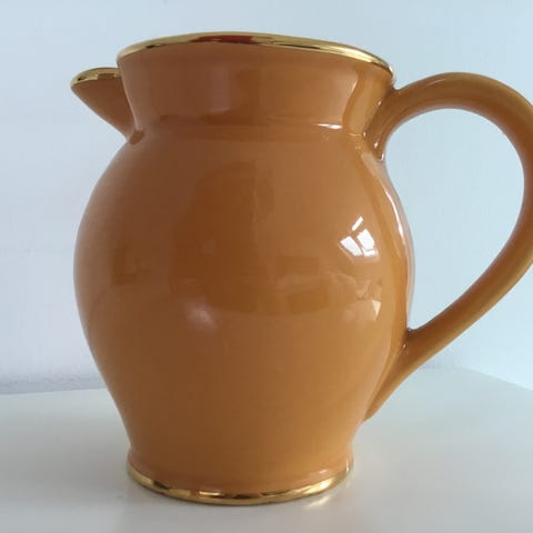 Hvid porcelæn med guld striber og logo