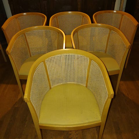 22 spisebordsstole af mærket Albin i Hyssna, navn: Bison. Design C. E. Ekström. Made in Sweden. Fremstillet tidlige 1980'ere (produktion ophørt).