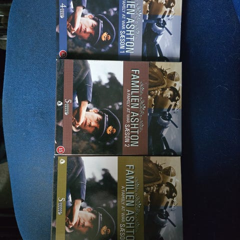Familien Ashton Sæson 1 DVD boks indeholder 4 DVD'er med episoder fra serien Familien Ashton. Serien foregår under Anden Verdenskrig og følger en families oplevelser. Boxen er på dansk og indeholder information om episoderne samt tekniske detaljer på bagsiden.