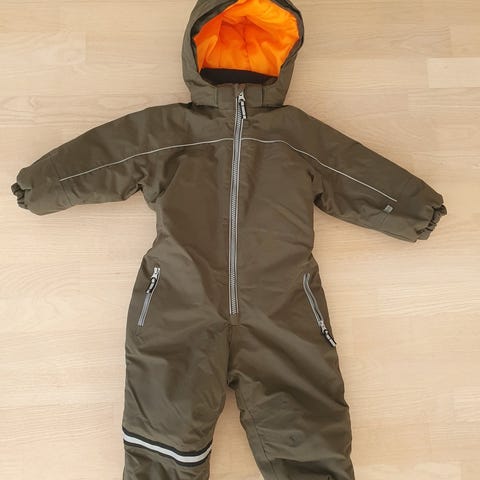 Vandtæt, vindtæt, åndbar flyverdragt fra Friends. Brun udenpå, lyseblå fleece indeni. Ingen huller.