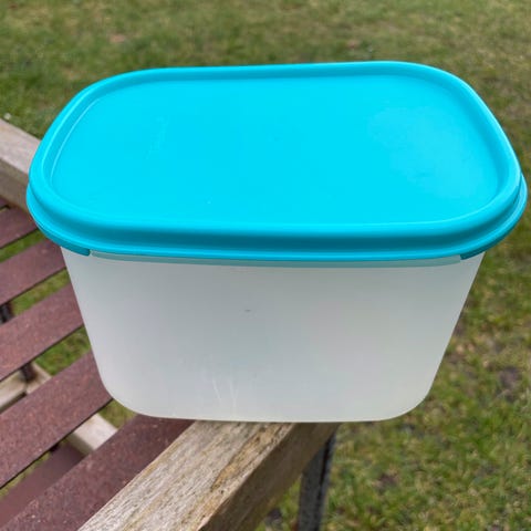 Super til opbevaring og servering af mad. Den rumme godt og vel 2,5 liter. Sender gerne