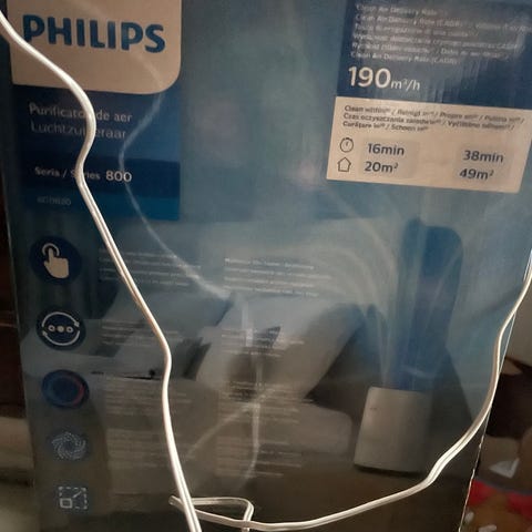 Philips Luftfilter med cylindrisk design i hvid farve. Enheden er kompakt og egnet til forbedring af luftkvalitet i mindre rum. Fremstillet i holdbart materiale med ventilationsåbninger for effektiv luftcirkulation. Strømforsyning via ledning.
