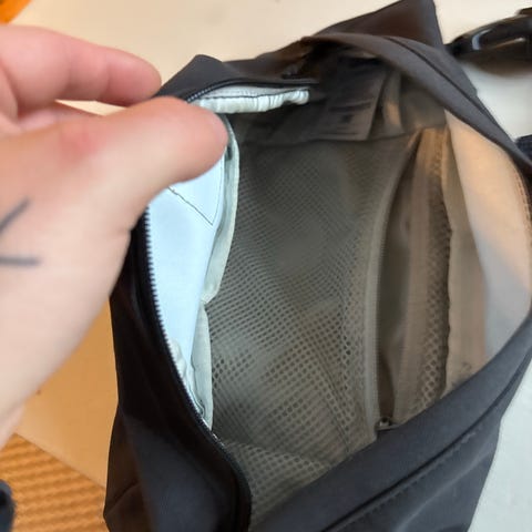 Se billeder for stand. Der er en lille flænge ved lynlåsen som gør man lige skal være obs når man lukker den, men det kan måske fikses eller skiftes af en fingernem 😊