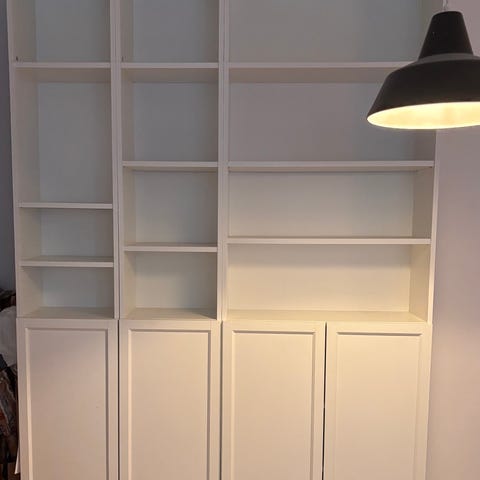 Flot Billy bogreol fra ikea med dekorerede skabslåger.