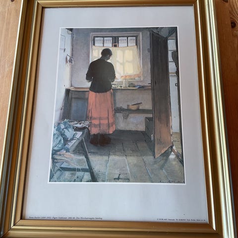 Tryk, Anna Kirstine Ancher, motiv: kræn wollesen bøder garn, b: 32 h: 42, Træramme med glas