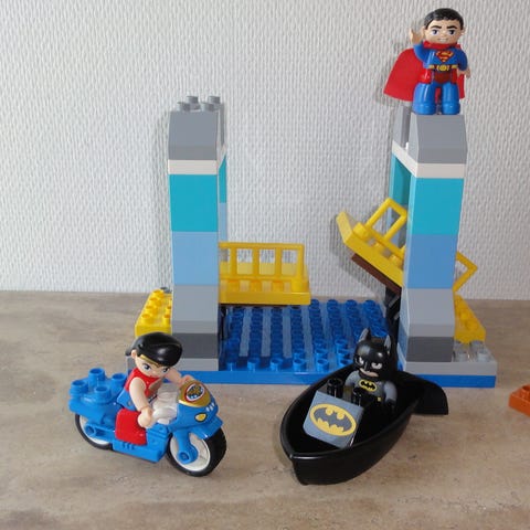 Superman, Catwoman og Wonder Woman med bro der kan åbne og lukke.