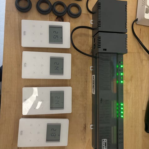 Roth Touchline Termostat i hvid farve. Digital termostat med LCD-display og berøringsknapper. Designet til styring af rumtemperatur med præcis kontrol. Kompatibel med 2 x 1,5V AAA-batterier (inkluderet). CE-mærket og beregnet til brug i bolig- og erhvervsmiljøer.