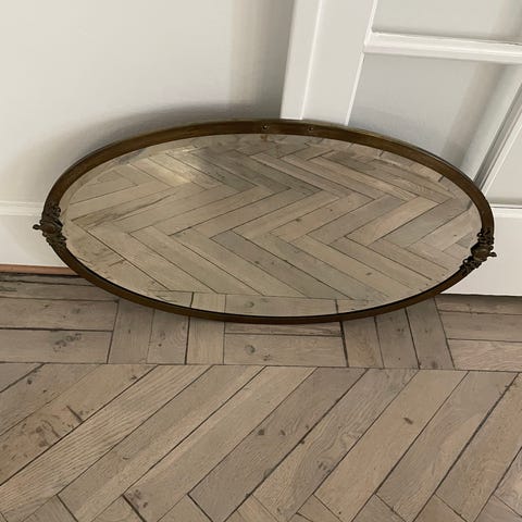 Spejlet har som det fremgår af billederne en naturlig patinering i kanterne, men det er ikke noget der generer, tværtimod giver det spejlet karakter og understreger at det er 70 år gammelt.