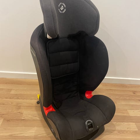 Maxi-Cosi autostol med en størrelse på 36 cm i sort farve. Autostolen er designet til børn og har sikkerhedsfunktioner til biltransport. Materialet er polstret for komfort, og stolen har justerbare selefunktioner.