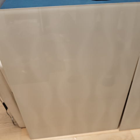 To skydelåger inkl. alt tilbehør til montering på 2 meter PAX skab fra Ikea. Grå ramme og felter i materet glas, som kan se lidt igennem. Minder om nutidens Bjørnöya i Ikea, som koster 3.900.