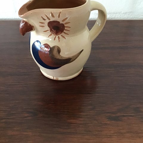 10 cm høj, 12 cm fra tud til hank og selve kanden har en diameter på 8 cm