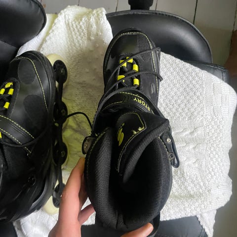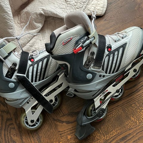 Rulleskøjterne er stort set ikke brugt og er næsten som nye. De er str. 39,5