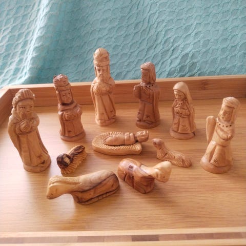 Mexico naivistisk håndmalet julekrybbe bemalet træ.