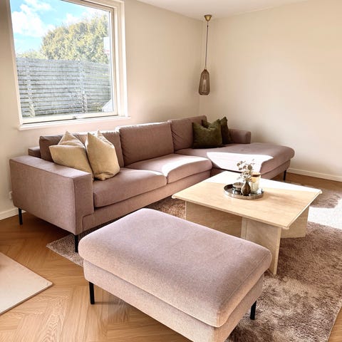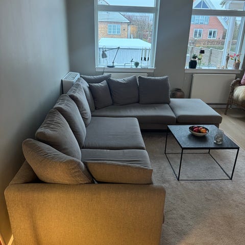 Helt ny flot sofa med chaiselong. Købt i Ilva. Slidstærk.