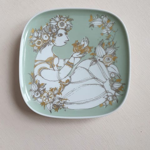 Platte / tallerken med hest eller dame og noder