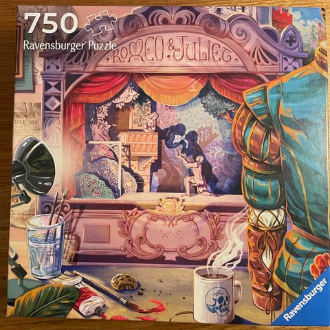 Puslespillet har en færdig størrelse på 70 x 50 cm.