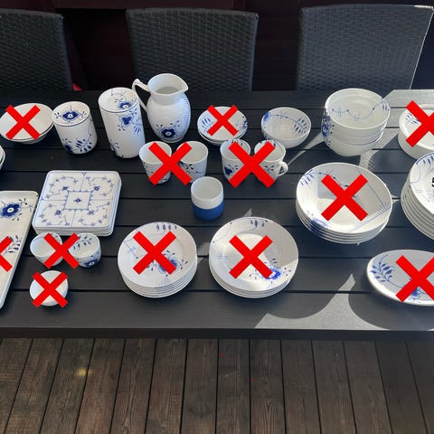 Royal Copenhagen musselmalet, blå mega og hvid riflet sælges