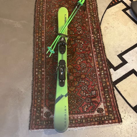 cm. Skiene er sorte og designet til alpint skiløb. Materialet og konstruktionen er tilpasset for at give stabilitet og kontrol på pisten.
