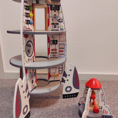 Stor raket der tæller ned til take off og lyser mangler øverste dør (men kan sagtens leges med uden)