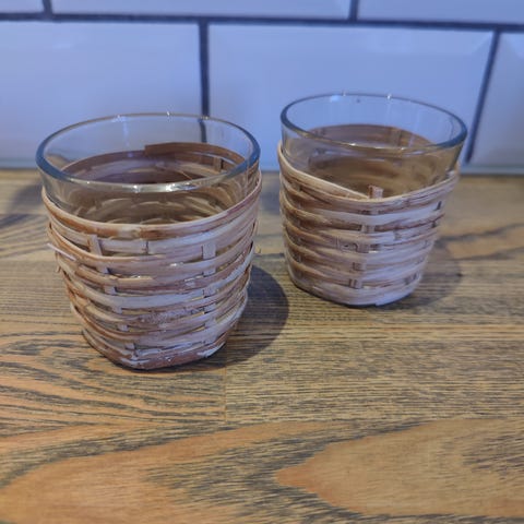 Til fyrfadslys, blå, højde 6,5 cm, hvor de er højest. Uden skår.