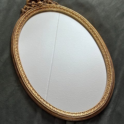 Spejlet er oprindelig i farven guld; men er spraymalet sølv.