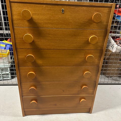 Gammel malet kommode m 4 skuffer. Nøgle medfølger, med patina og brugsspor, fast pris