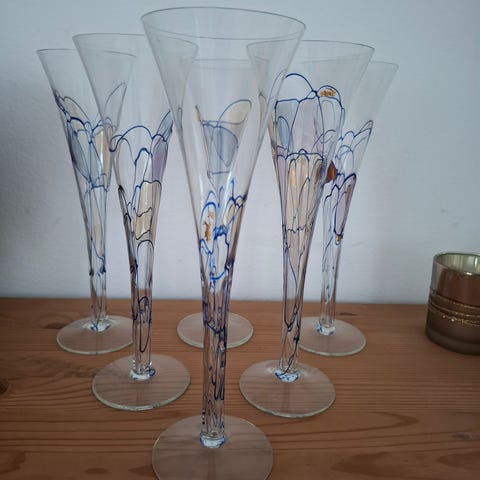 Champagneglas eller dessertglas. Helt som ny. Sælges helst samlet.