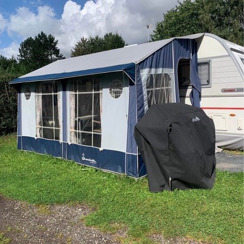 Der medfølger thermoloft, ekstra vintersikring (stænger), der medfølger 2 hold gardiner ( original gardiner og tilkøbte hvide gardiner)