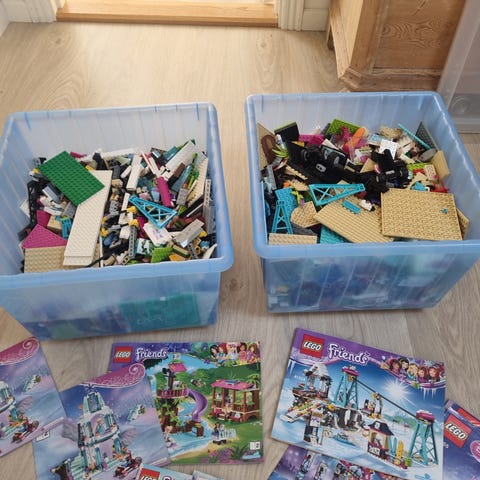 Der er en kasse med flere sæt samt manualer der er samlet i poser