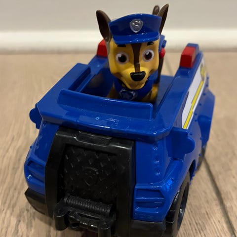 Mellemstørrelse Paw Patrole køretøj der ved et tryk på en knap forvandler sig til 2 køretøjer. Med få brugsspor og virker som den skal.
