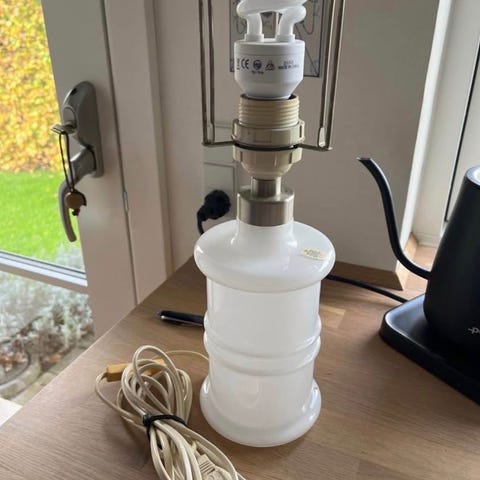 Holmegaard bordlampe mærke Sekura lille kugle og tilhørende vase, fejler intet. Skærm medfølger ikke