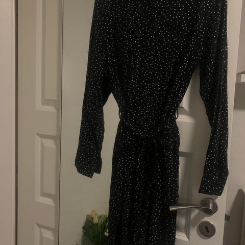 Ze-Ze Smuk kjole med stræk i stoffet. Sort med kobber/guld farvet prikker.