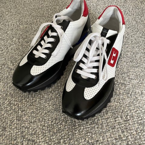 Nike Roshe One sneakers i størrelse 42. Skoene er sorte med hvid sål og har en let og åndbar mesh-overdel. Designet til både hverdag og let træning.