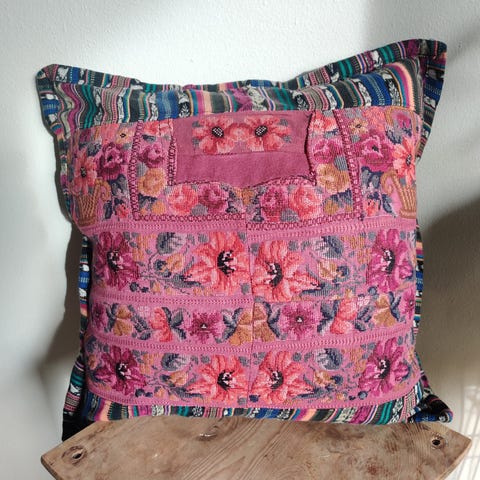Unika pude syet af vintage unika vævet og broderet stof fra Guatemala. Sælges uden fyld. kan sendes med Dao eller afhentes i Kbh K.