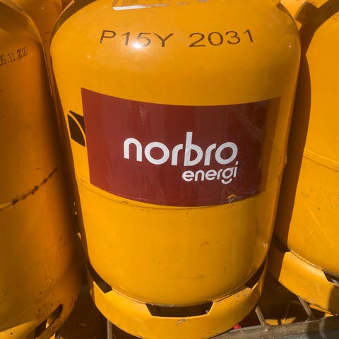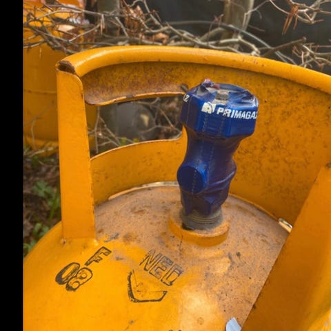 Fyldt gasflaske. Passer ikke til alm gasregulator