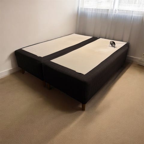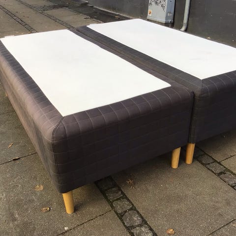 IKEA Stavanger boxmadras (42cm høj) med 4stk IKEA Båtsfjord ben (20cm høje).