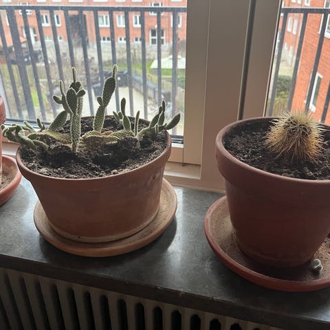 Vores far er kommet på plejehjem og kan ikke få alle sine kaktusser med. Vi har netop omplantet dem med ny veldrænende kaktusjord.