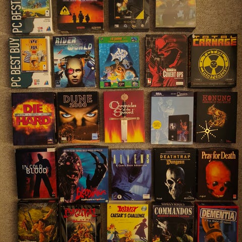 Sælger en god blanding Big Box spil med nogle skønne titler. Enkelte Sealed.