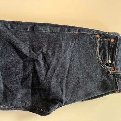 billige smarte og ubrugte mørkeblå jeans til salg