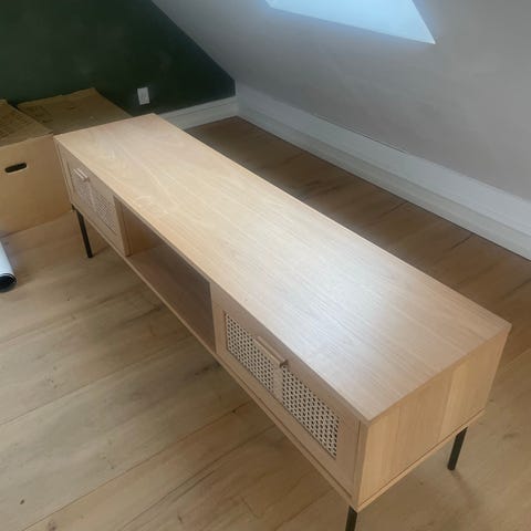 Virkeligt flot tv møbel der er god til at gemme forstærker og lignende væk. Der er tilsluttet en forlænger ledning i den.
