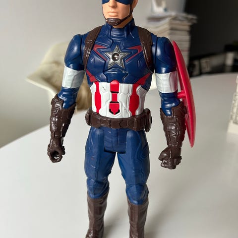 Sælger denne mørkeblå Captain America-figur fra Marvel.