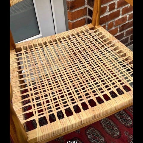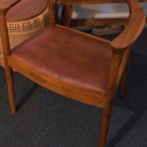 5 teak træ stole med flettet sæde i perfekt stand. Prisen er pr. stk.