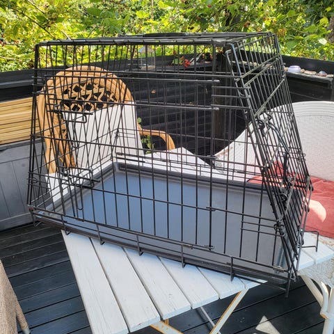 Buret er nyt og har ikke været i brug, da hvalpen helst ville være i en anden model 😅