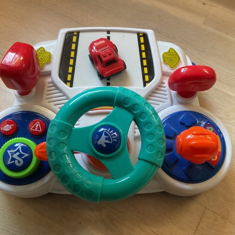 Dette fine bilrat og instrumentbræt giver dit barn sit første møde med både transportmidler, farver, tal og forskellige dyr. Dette gøres både visuelt med udseendet, auditivt med de mange sjove og realistiske lyde samt fysisk ved at bruge hænderne med legetøjet.